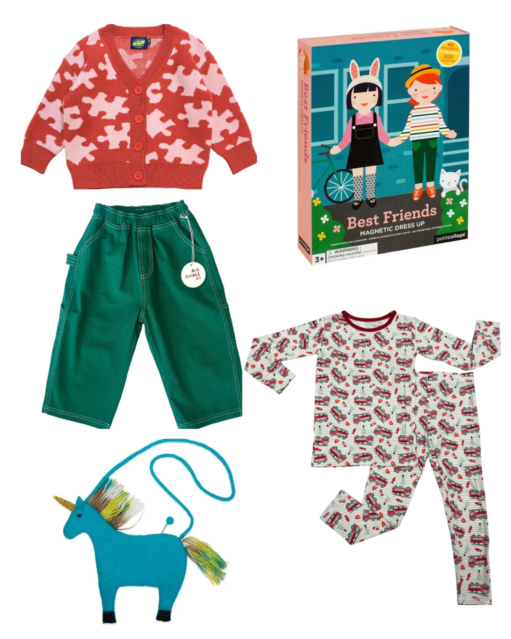 • Red puzzle cardigan from Milk Teeth