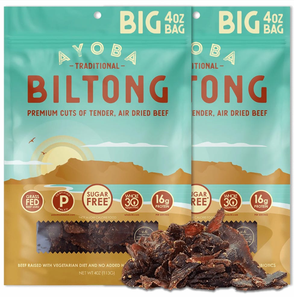 [Ashley] - Do people know about biltong? Am I a late adopter? It’s a South African air-dried, cured meat (think beef jerky) and it is DELICIOUS. My colleague included it on our office snack order and I am now addicted. Biltong will carry me through to spring.
